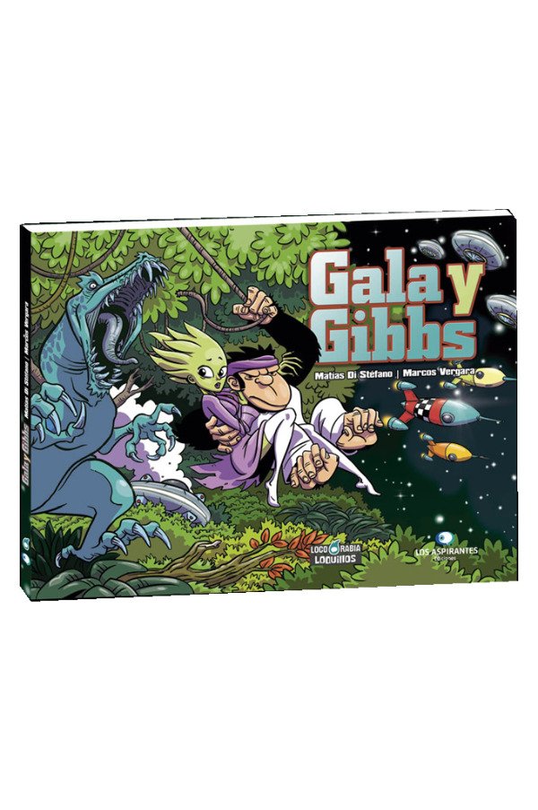 Una aventura de ciencia ficción con monos espaciales, cohetes, platos voladores, rayos, piñas, amor y hasta dinosaurios. Coquetísimo álbum apaisado para leer de un tirón hasta quedarse sin aliento!